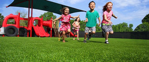 La pelouse synthétique un revêtement rentable pour l’aménagement des aires de jeux de votre école.